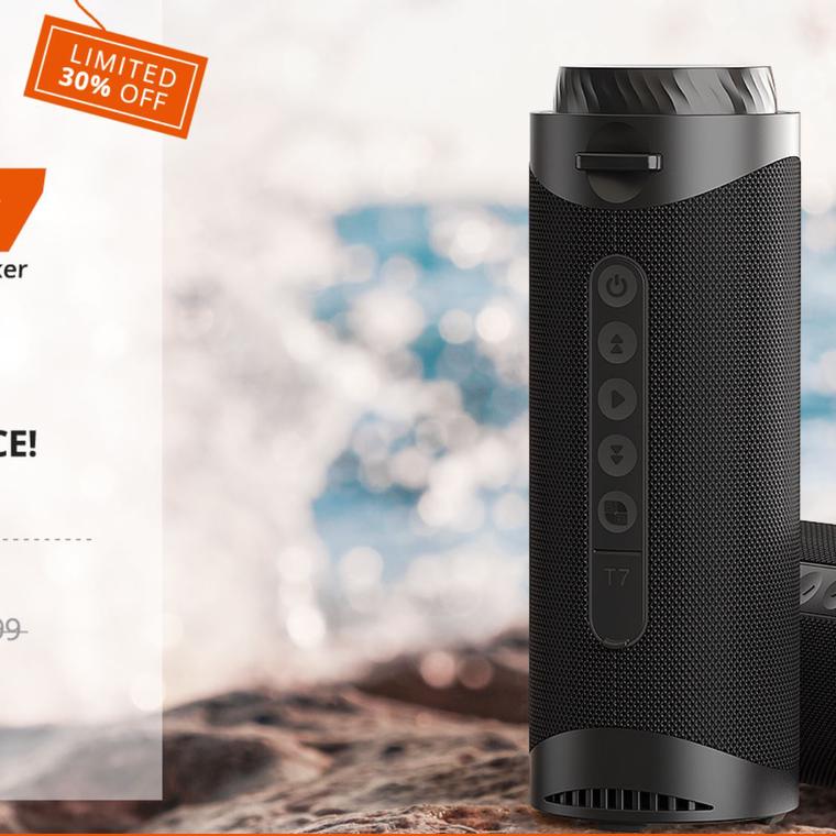 El Tronsmart T7 hereda el diseño cilíndrico de la serie T6. Gracias a eso el T7 es tan cómodo de usar y transportar como antes. Además, cuenta con el certificado de resistencia al agua IPX7 lo que nos permite usarlo sin preocuparnos si se moja por el mal tiempo.