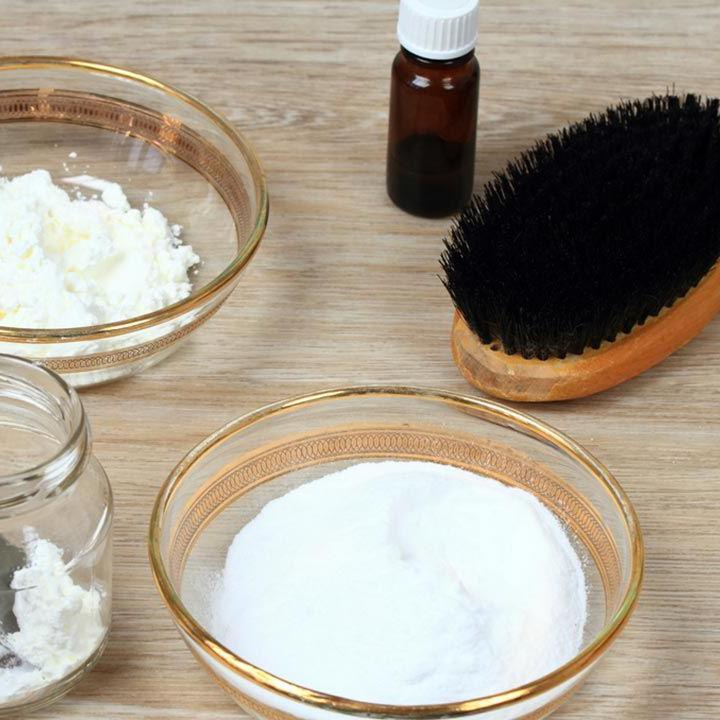 En realidad, el único ingrediente que tienes que usar es el talco puro para bebés. No es necesario mezclarlo con nada más; es una buena opción porque es fácil de usar.