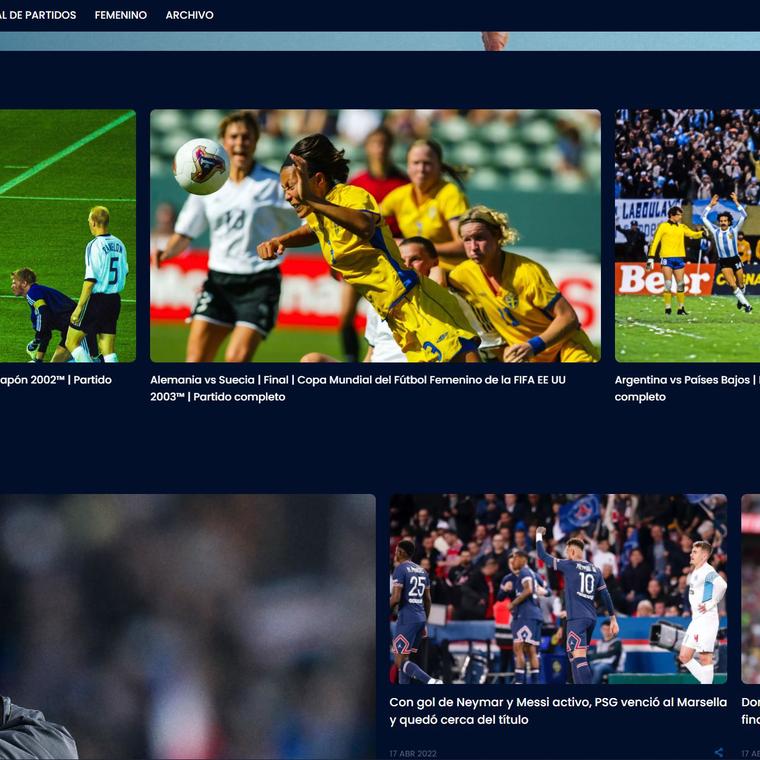 El servicio de streaming también incluye el archivo de FIFA+ para ver partidos anteriores. Aquí encontrarás más de 2.000 horas de contenido archivado, lo que te permitirá ver los partidos completos, los resúmenes y las repeticiones.