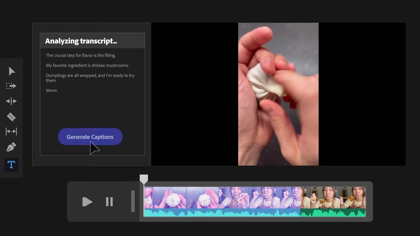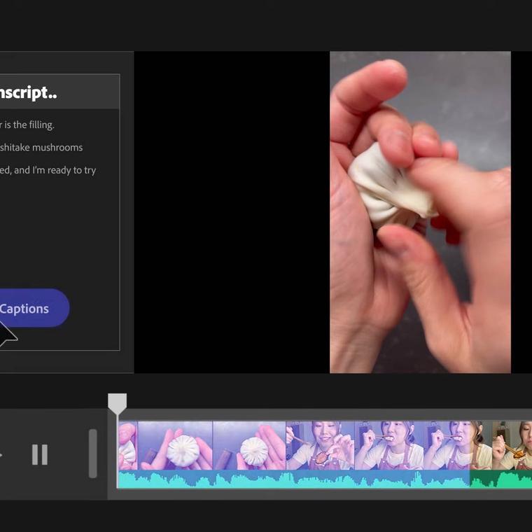 Firefly puede utilizar indicaciones de texto para editar automáticamente un vídeo basándose en lo que la IA ve en diferentes tomas. Puede combinar la función con la transcripción de audio (que puede utilizar para aplicar subtítulos automáticamente) para editar escenas según el diálogo hablado.