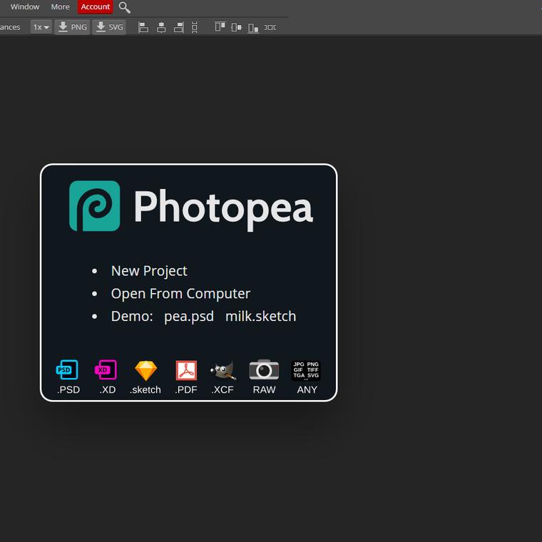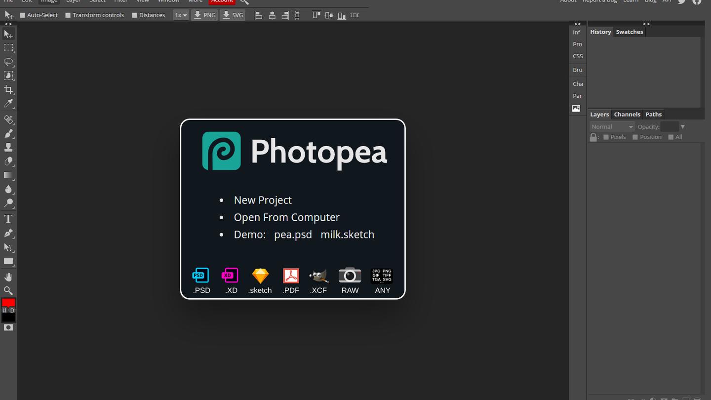 Photopea es una web gratuita que permite editar fotografías de manera muy similar a Photoshop y que no es necesario instalar nada porque funciona directamente en el navegador. Además, permite abrir ficheros de Photoshop y puede exportar en varios formatos diferentes.