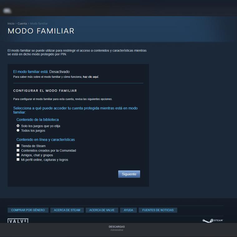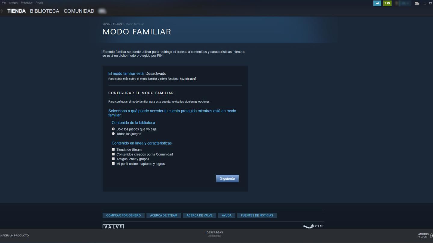Cómo desactivar el Modo Familiar en Steam