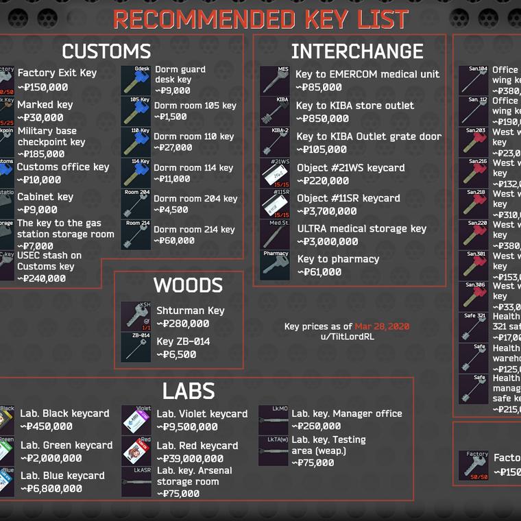 Las demás llaves de Customs no merecen la pena a día de hoy, cuando modifiquen el loot y sea más random quizás haya que añadir algunas.