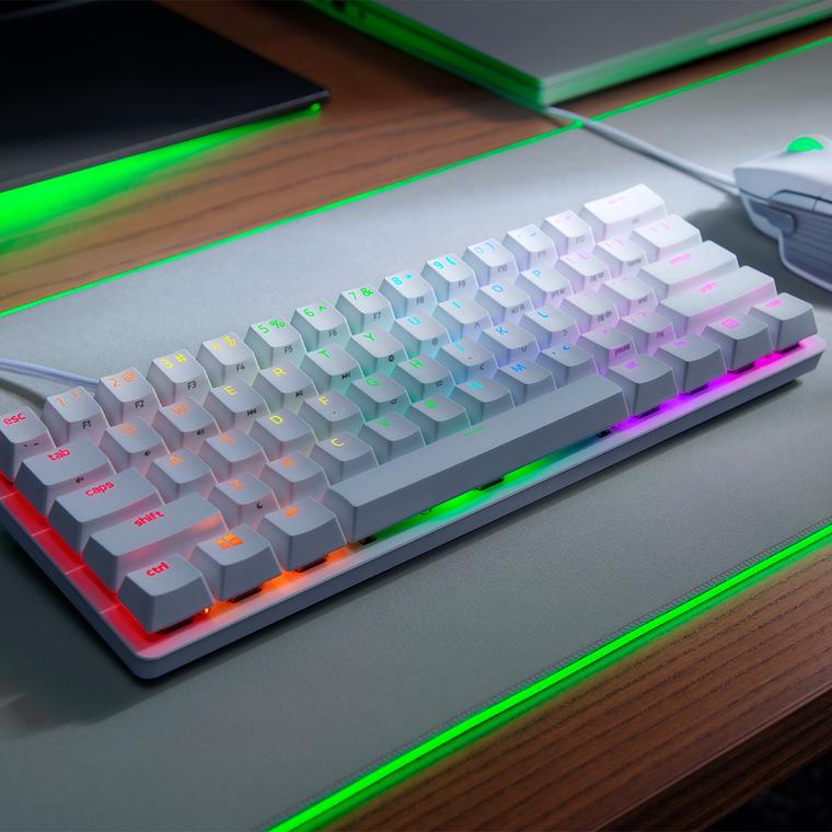 La novedad más importante del Razer Huntsman Mini es su tamaño. Cada vez más gamers usan teclados TKL y 60% por la ergonomía en la mesa a la hora de utilizarlos como a la comodidad en el transporte.