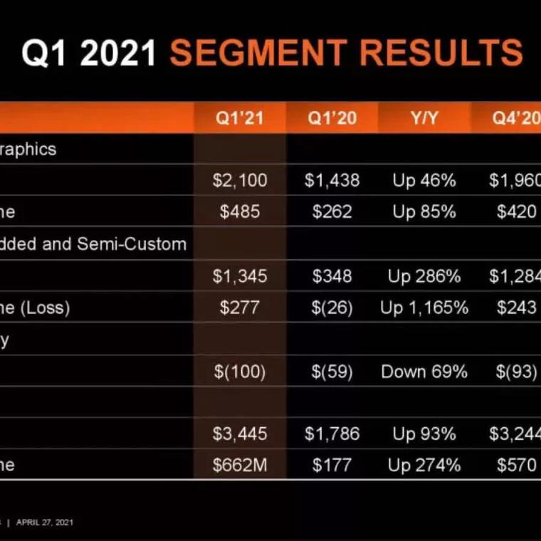 La consejera delegada, Lisa Su, se refirió a la división de móviles: “Hemos conseguido nuestro sexto trimestre consecutivo de ingresos récord en procesadores móviles gracias a la demanda sostenida de los procesadores de la serie Ryzen 4000 y al lanzamiento de nuestros nuevos procesadores de la serie Ryzen 5000.”