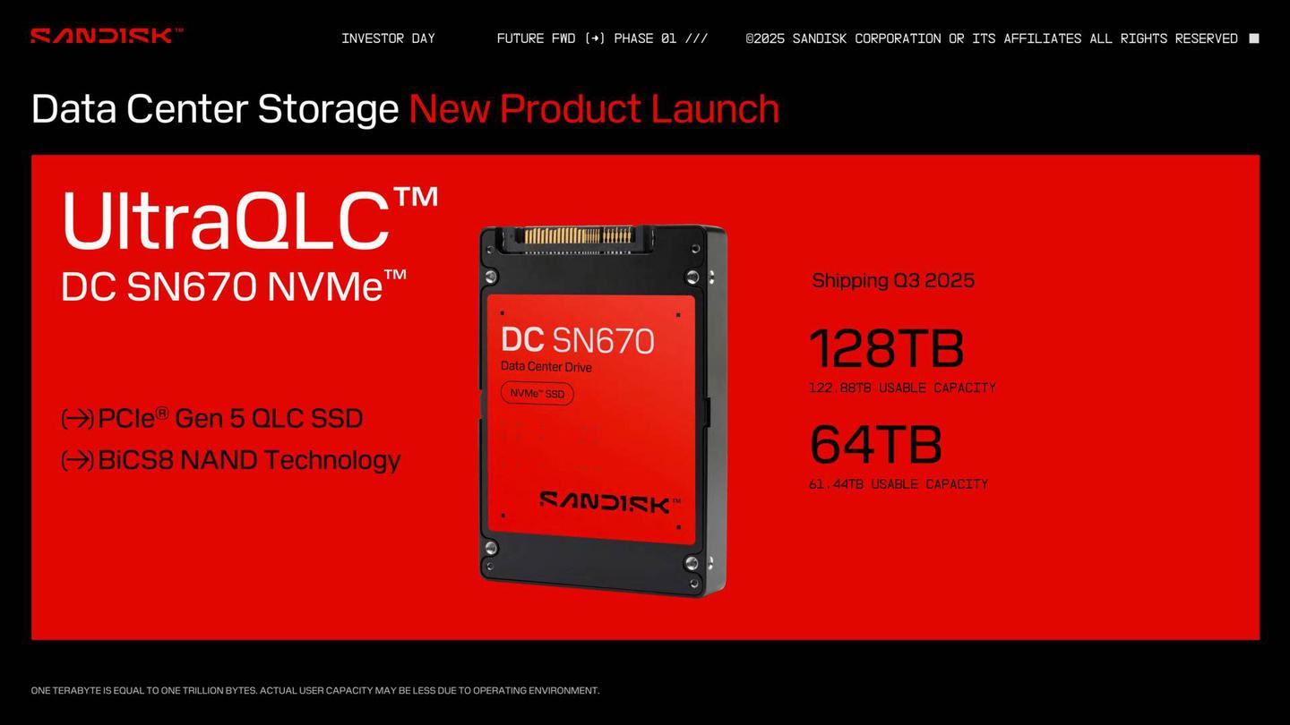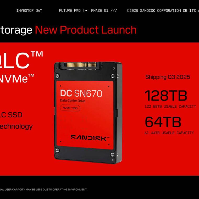 - Plataforma Ultra QLC: Stargate impulsará los nuevos SSD empresariales “Ultra QLC” de SanDisk (también conocidos como la serie DC SN670), que se lanzarán con modelos de 64 TB y 128 TB en el tercer trimestre de este año.