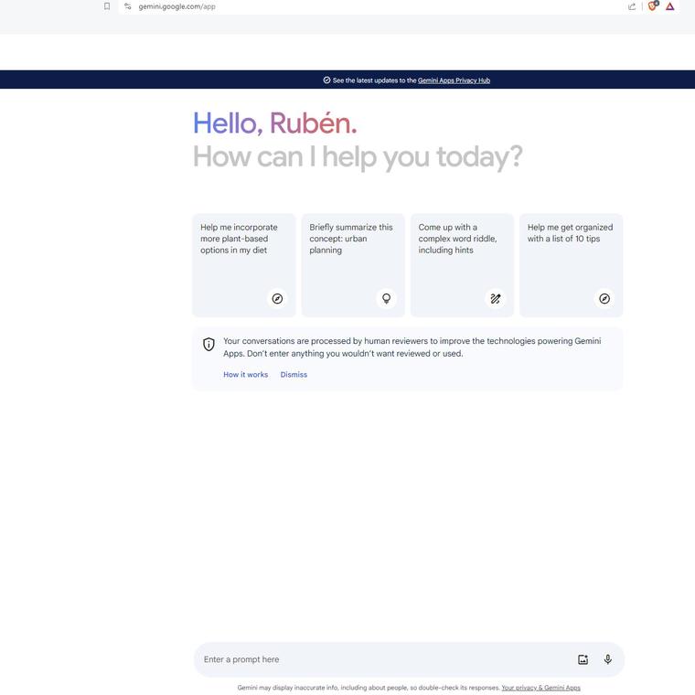 Ya podemos empezar a utilizar el chatbot Gemini de Google. Sólo tienes que introducir tu consulta en el área de texto y enviarla al chatbot para ver (u oír) su respuesta.