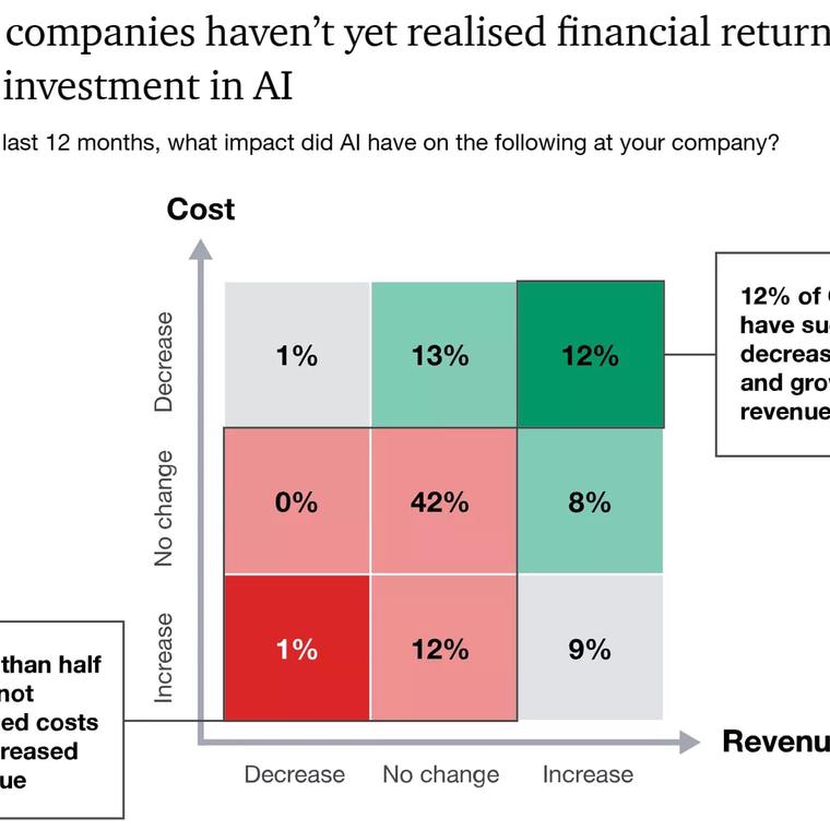 En resumen, aunque las empresas siguen invirtiendo masivamente, la gran mayoría todavía está esperando que la IA cumpla su promesa de aumentar los ingresos y recortar gastos.