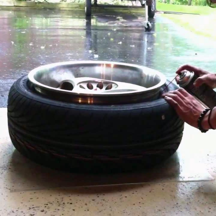 Para ello tenemos que rociar el interior del neumático con la mezcla inflamable y también los labios de la llanta. Es importante rociar la llanta por dos motivos: