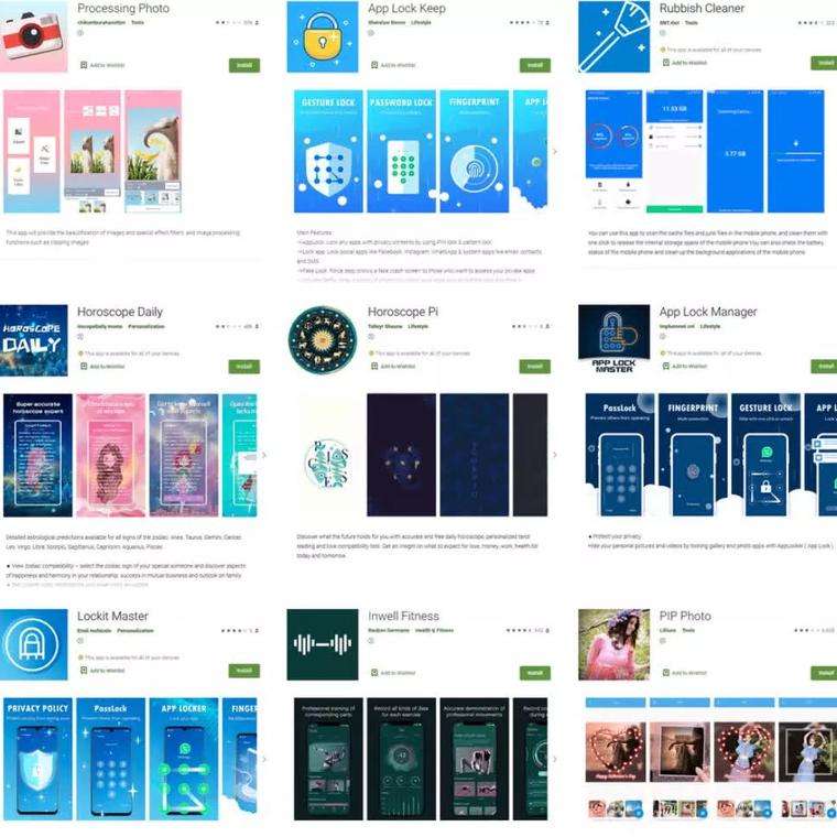 La mayoría de los 5,8 millones de descargas correspondieron a una aplicación llamada PIP Photo. Le siguió Processing Photo, con más de 500.000 descargas. Rubbish Cleaner, Inwell Fitness y Horoscope Daily tuvieron más de 100.000 descargas.