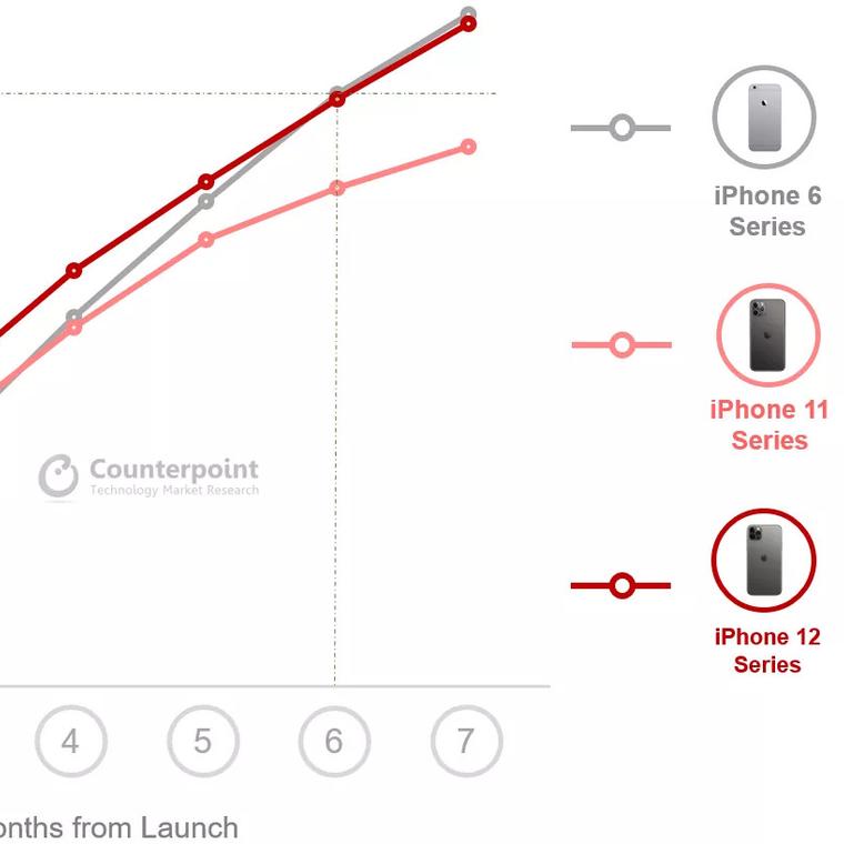 Parece ser que la popularidad de los iPhone no tiene límites y es que, según Counterpoint Research, Apple ha vendido más de 100 millones de teléfonos iPhone 12 desde el lanzamiento de los dispositivos con tecnología 5G a finales del año pasado hasta en abril de 2021. Eso supone que ha tardado solo 7 meses en llegar a esa cifra, dos meses menos que la serie del iPhone 11 y casi lo mismo que la serie del iPhone 6.