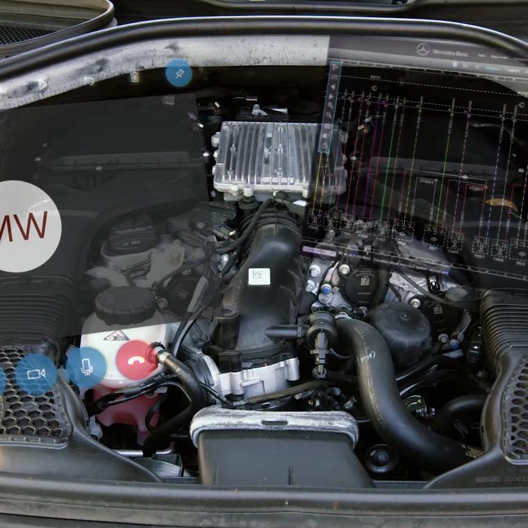 Microsoft y Mercedes-Benz está dotando a sus concesionarios de tecnología de realidad aumentada para acelerar el diagnóstico y la reparación de problemas difíciles y complejos con su servicio de asistencia remota virtual. Para ello utilizan las gafas HoloLens 2 de Microsoft y Dynamics 365 Remote Assist.