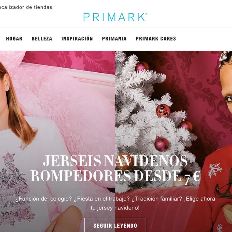 Primark cuenta con su propia página web a la que podrás acceder a través de primark.com/es podrías pensar en comprar en Primark online, porque al abrir la página verás información actualizada acerca de toda la ropa que tienen, te muestran categorías para mujeres, hombres, niños, bebés, artículos para el hogar, la sección de inspiración, primania y primark cares.