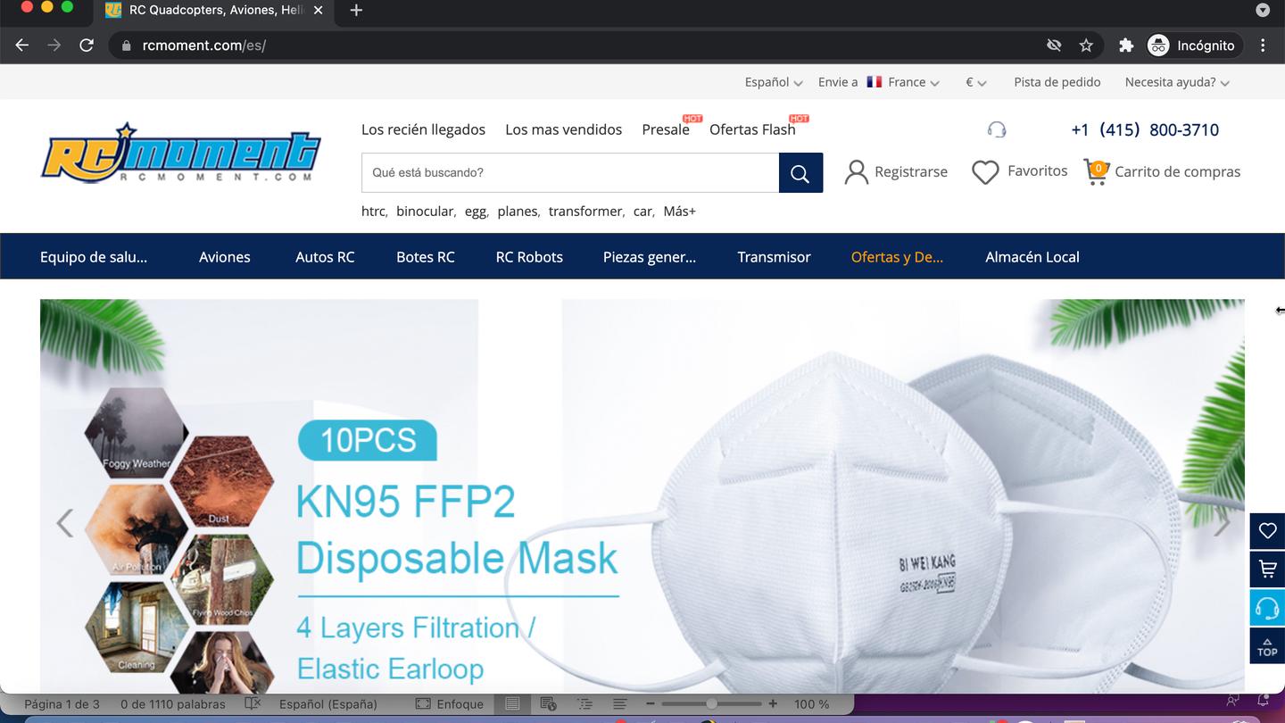 Al ingresar en la tienda virtual a través de rcmoment.com te encontrarás con que está completamente en español. Y es que RC Moment se encuentra funcionando operativamente desde hace años en el mercado online español. La web obtiene tu ubicación y muestra sus productos en la moneda de tu país.
