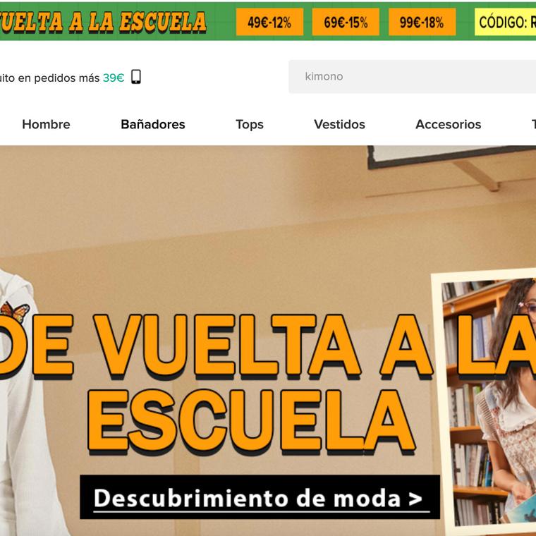 Lo primero que verás al entrar en Zaful serán los descuentos que nos ofrece y un código para utilizar en nuestras compras. En el margen superior aparece el buscador, el ícono para registrarte, la cesta de compra y por último un ícono para poder elegir tu país y la moneda correspondiente.